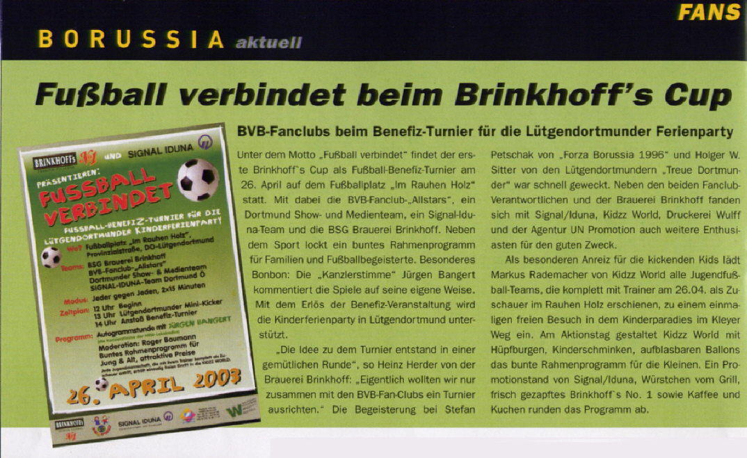 Benefiz-Turnier 1. Brinkhoff´s Cup 2003 – „Fussball verbindet“