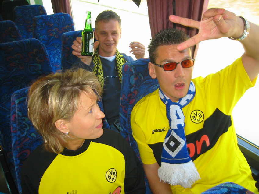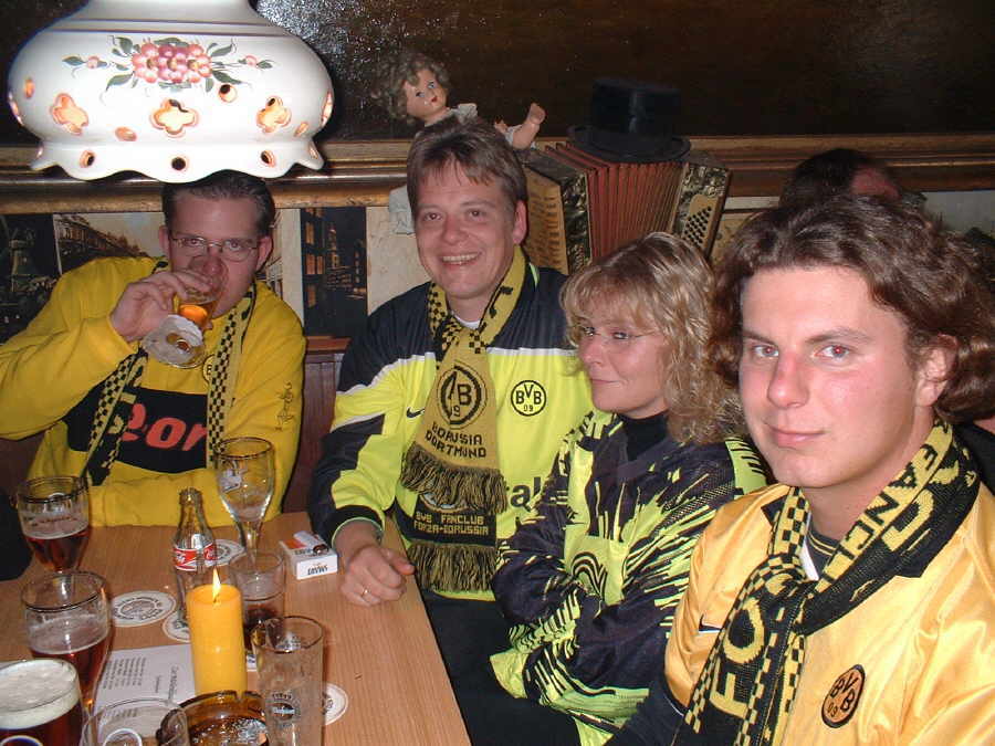 Traditionell nächtigt der Fanclub Forza-Borussia 1996 während seiner Auswärtsfahrten nach Hamburg in dem mit 4 Sternen