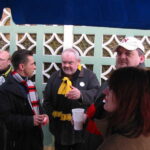 Diese kulturellen Highlights ließen sich fast endlos fortsetzen, fanden jedoch im Barfüßer mit einer Druckbetankung und etwas fester Nahrung einen abrupten Abschluss, denn das fast nebensächliche Auswärtsspiel störte irgendwie den Tagesablauf. Innerlich heiß auf das Spiel, äußerlich bei Temperaturen um den Nullpunkt, kehrten wir mit dem Ureinwohner ErnstL noch im „Geheimtipp“ Gartenkneipe ein, um Entzugserscheinungen hinauszuzögern, doch der Anpfiff, eigentlich einer der wenigen gelungenen Schiedsrichteraktionen, ließ sich nicht verhindern.