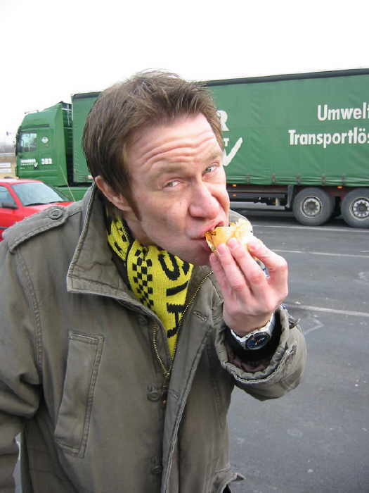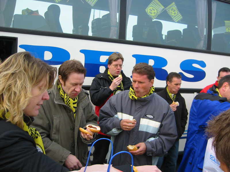 Traditionell wurde die Anreise nicht nur durch zahlreiche „Pinkelpausen“, sondern auch durch das bewährte, allseits beliebte Frühstück, sogar klinisch einwandfrei zubereitet, unterbrochen. Nur wenigen Stimmen war zu entnehmen, dass warmer Kaffee vielleicht besser gepasst hätte als kaltes Bier. Immerhin konnten wir den Belag erfolgreich gegen die Bundeswehr verteidigen.
