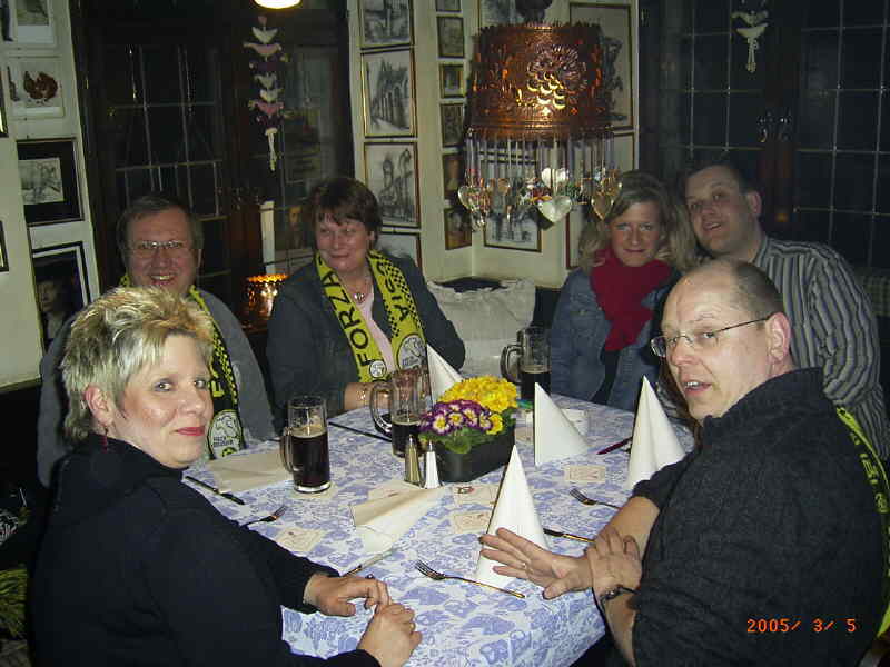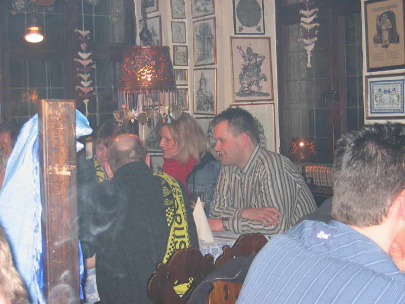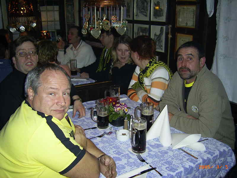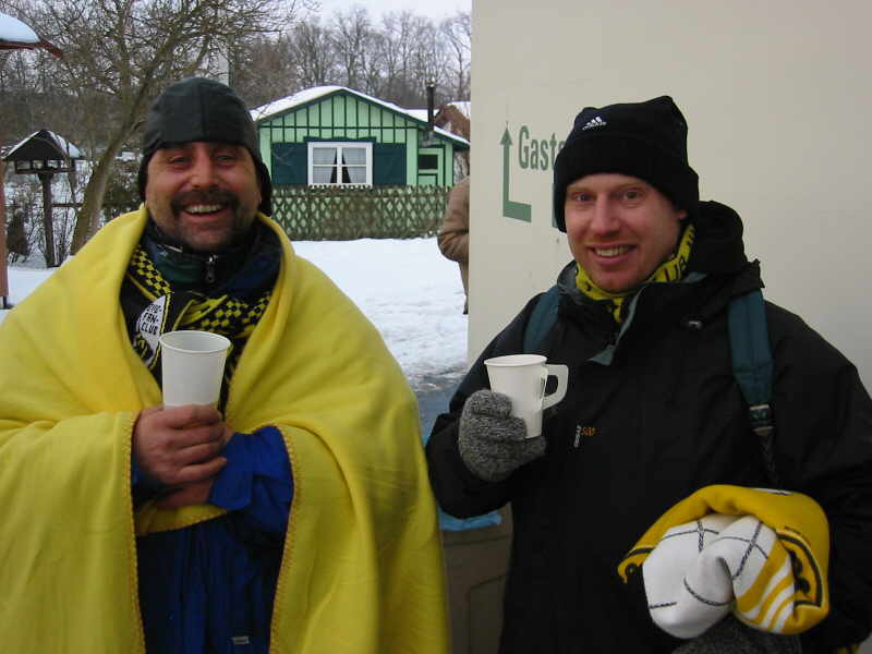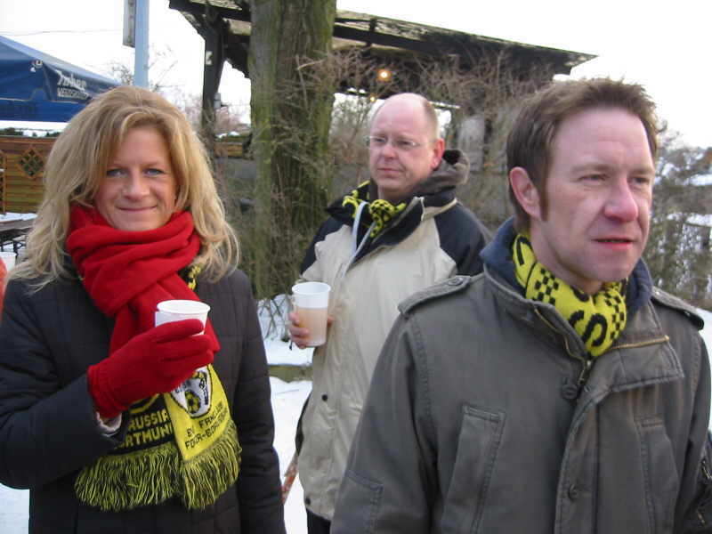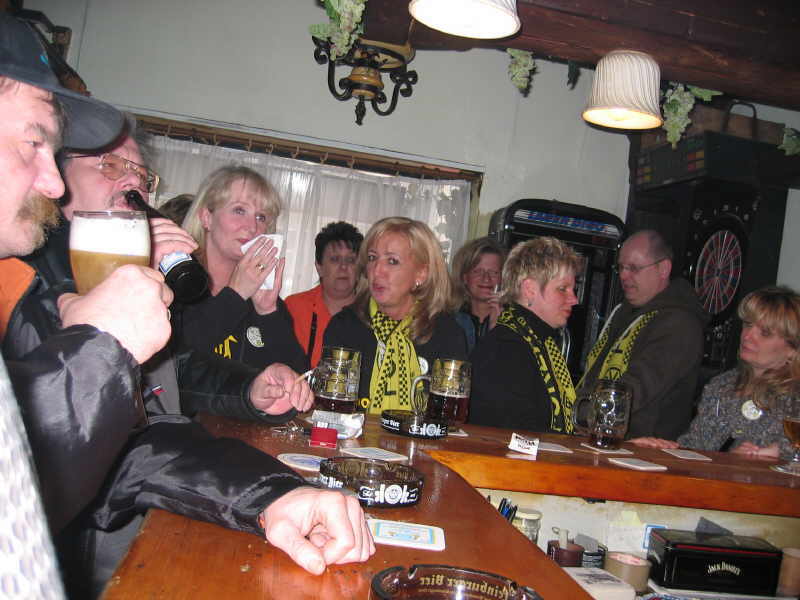 Diese kulturellen Highlights ließen sich fast endlos fortsetzen, fanden jedoch im Barfüßer mit einer Druckbetankung und etwas fester Nahrung einen abrupten Abschluss, denn das fast nebensächliche Auswärtsspiel störte irgendwie den Tagesablauf. Innerlich heiß auf das Spiel, äußerlich bei Temperaturen um den Nullpunkt, kehrten wir mit dem Ureinwohner ErnstL noch im „Geheimtipp“ Gartenkneipe ein, um Entzugserscheinungen hinauszuzögern, doch der Anpfiff, eigentlich einer der wenigen gelungenen Schiedsrichteraktionen, ließ sich nicht verhindern.