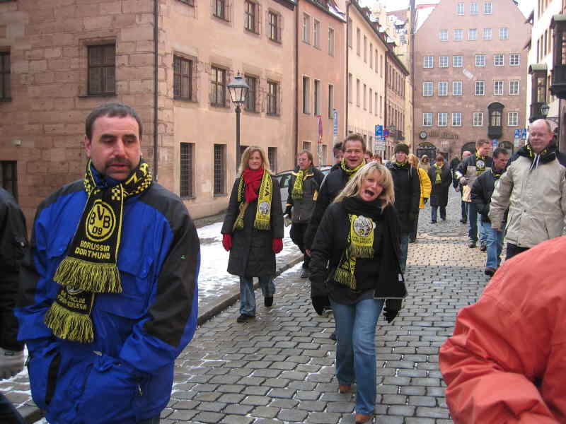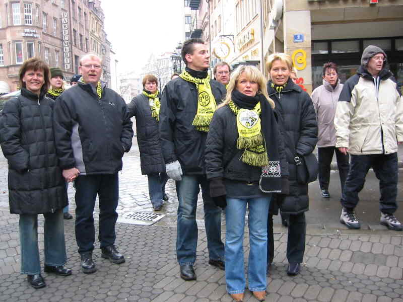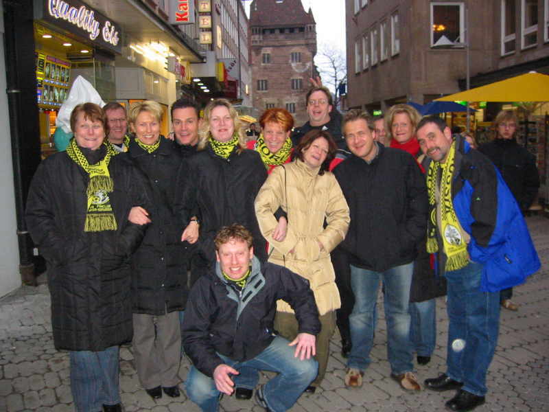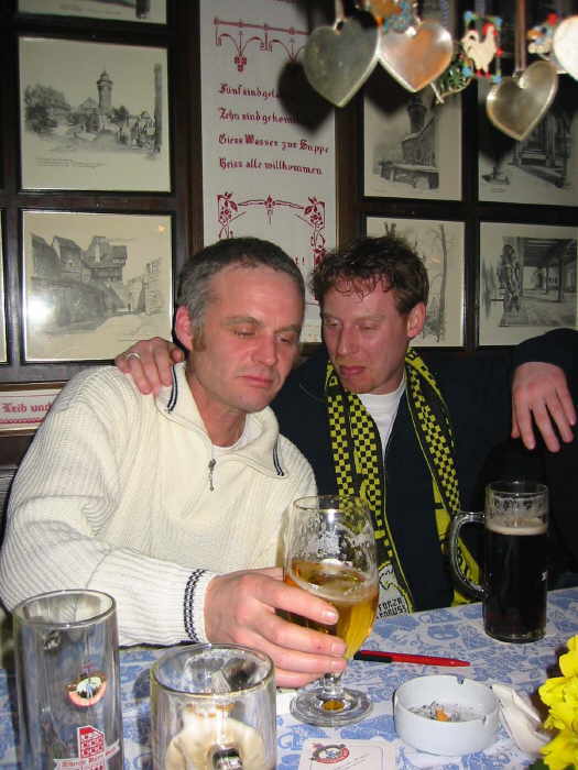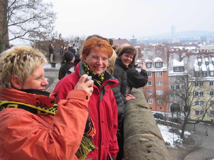 Der nächste Tag begann für fast alle mit einem opulenten Frühstücksbüfett, leider ohne Sekt, nur „the terrible porntwins“ Dirk und Holger, schade Erhard, wurden nicht gesichtet. Auch der Busfahrer Klaus hatte sich, wie auch immer, selbst ausgesperrt, aber selbst eine Rückfahrt mit dem IC hätte so seine Reize gehabt. Ihnen entging somit nicht nur Hohn und Spott, sondern auch der kulturelle Ausflug ins alte, ehrwürdige Nürnberg, vorbei am Lochgefängnis und dem Lokal am schönen Brunnen, hinauf zur Kaiserburg, ächz, stöhn, und dem Lokal „Zum Burgwächter“, zurück zum Christkindlmarktplatz vorbei an den Dürer-Stuben.