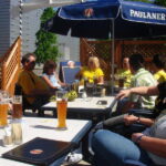 Also schnell einchecken, das von den Kiddis übervölkerte (es findet ein Fussballturnier für Jugendmannschaften statt) Hotel Holiday durch den Hinterausgang verlassen und im gegenüberliegenden Paulaner in die Sonne setzen und einige Kaltschalen zu sich nehmen.