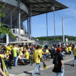 Bei der Ankunft dann für alle dasa „AHA-Erlebnis“: Entfernung Bus-Parkplatz/Stadion-Eingang keine 10 Meter, Bus zum Wasser-Panorama 20 Meter, Mantaschale und Kaltgetränke ebenfalls direkt anne Ecke, alle sind glücklich, was will man mehr…..