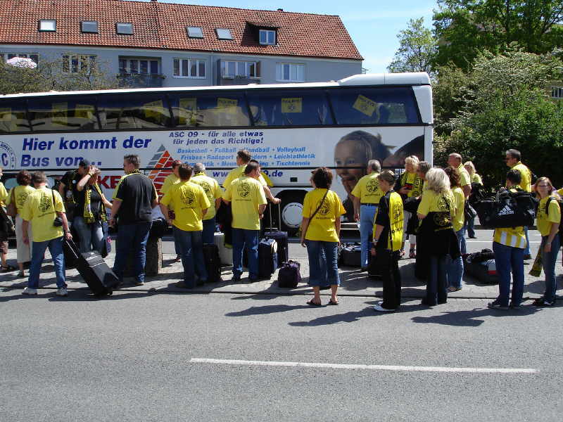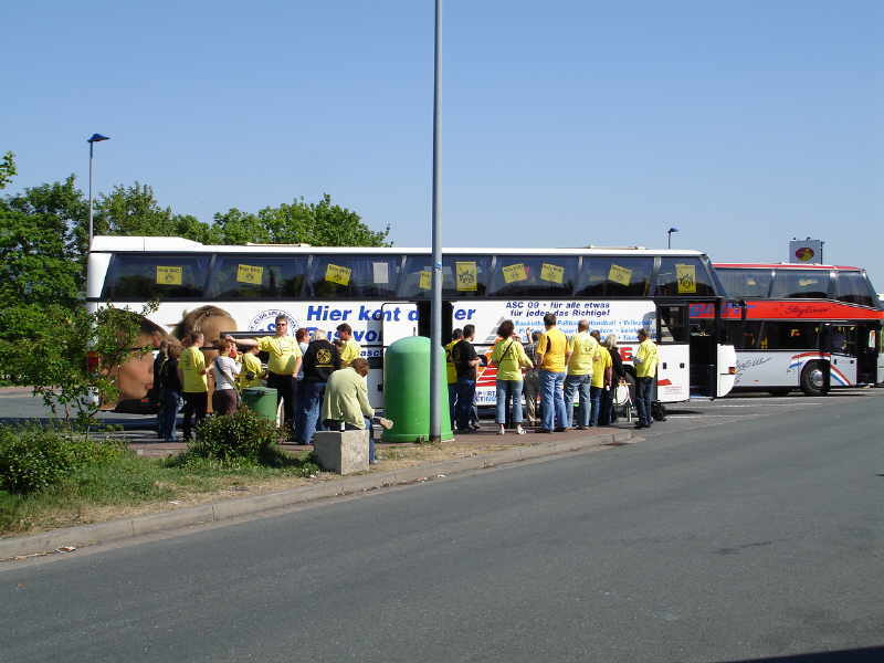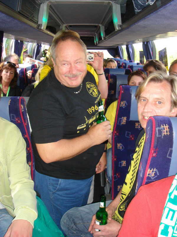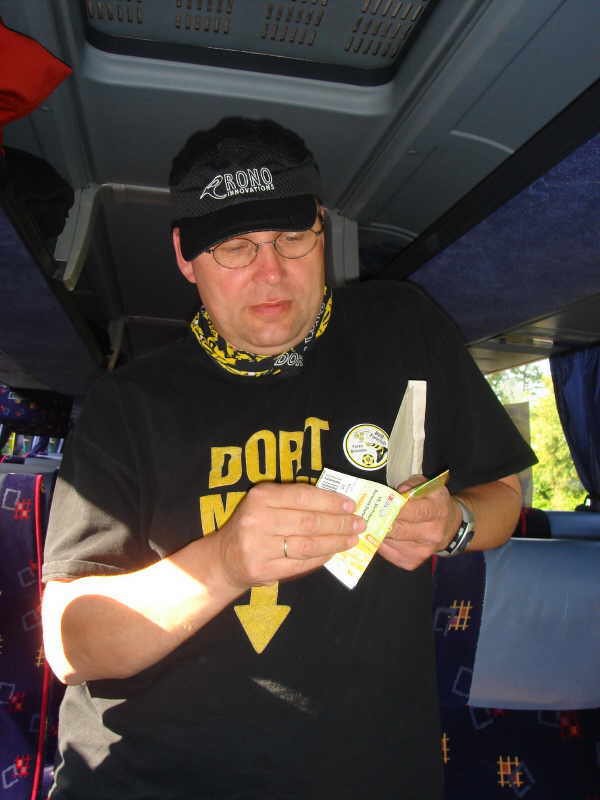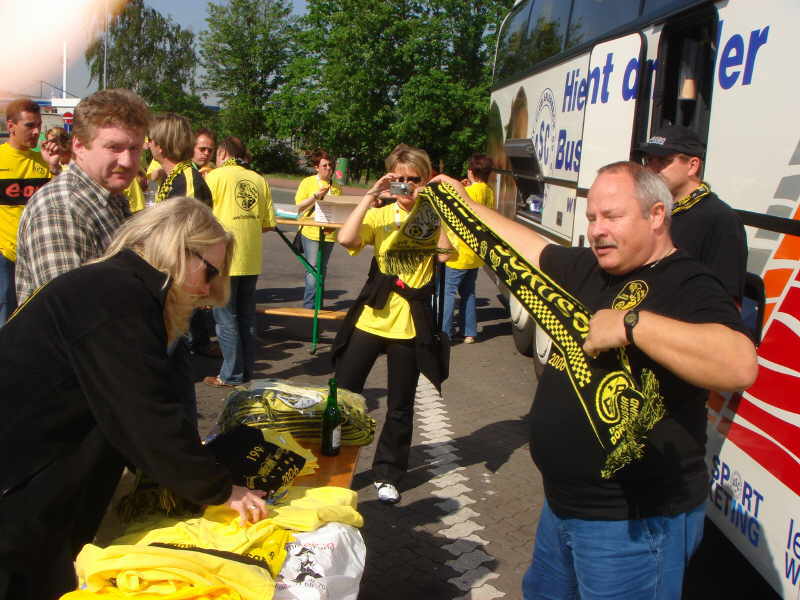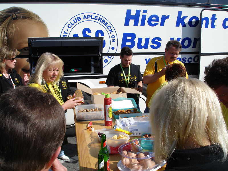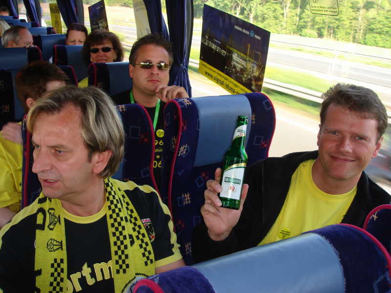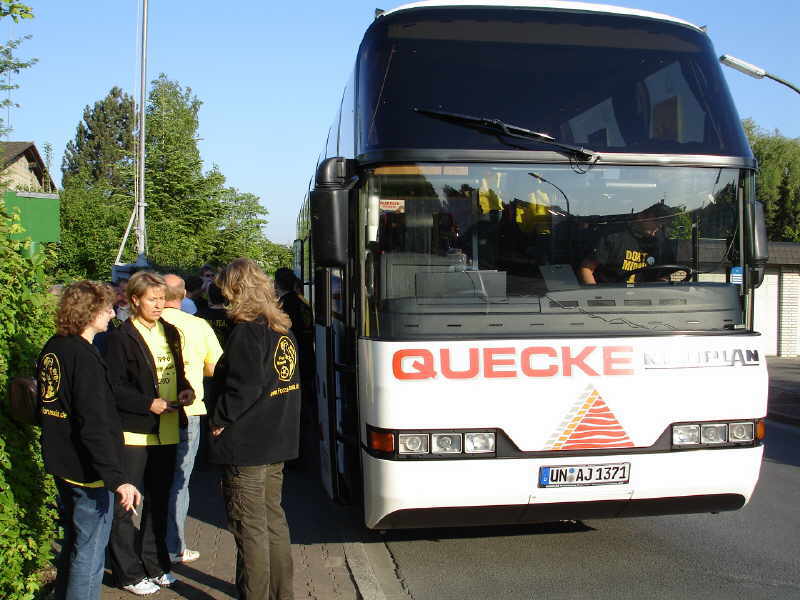 An unserer Planung sollte es nicht scheitern, ein toller Bus der Fa. Quecke wurde gechartert. Mit prima Tarnung als Sportclub Aplerbeck, wer würde schon in dem Bus ein Außenlager der Brauerei Brinkhoff vermuten…