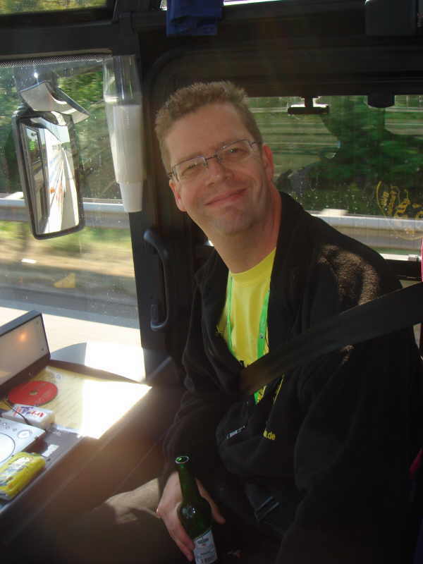 Das Essen lässt noch ein wenig auf sich warten, der DJ (nein, es war Nicht der Ötzi) ist noch nicht im Amt, ABER wir haben ja unseren singenden Busfahrer Christof!!!