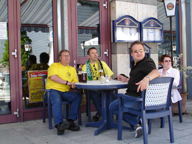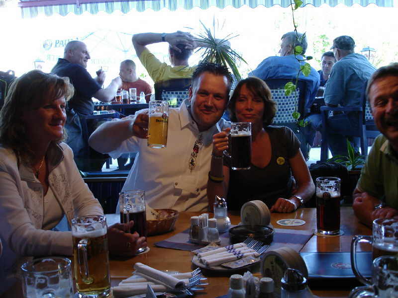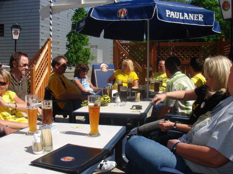 Also schnell einchecken, das von den Kiddis übervölkerte (es findet ein Fussballturnier für Jugendmannschaften statt) Hotel Holiday durch den Hinterausgang verlassen und im gegenüberliegenden Paulaner in die Sonne setzen und einige Kaltschalen zu sich nehmen.