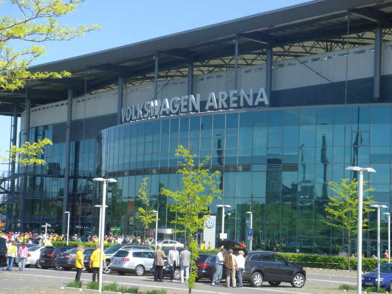Gegen 13.00 Uhr erreichen wir WOB-City und der Busfahrer Christof muß höllisch aufpassen, dass er nicht zu schnell ist, denn sonst ist er bereits wieder am schwarz-gelben Ortsausgangsschild vorbei….