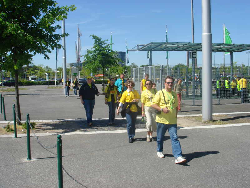 12.30 Uhr Abfahrt bzw. Abwandern zur nicht weit entfernten VW Arena. Die sportliche Abteilung der FORZESEN genießt das schöne Wetter „bei Fuß“.