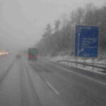 Klaus, unser Busfahrer, bekräftigte nach einem netten Guten-Morgen-Gruß, dass er als Nicht-BvB-Fan und Nicht-Fußball-Fan alles tun werde, so nette Fans sicher und zügig nach Freiburg zu fahren. Unser Präsi schloss sich dem Guten-Morgen-Gruß an, erklärte kurz den Ablauf und gab den Getränkeverkauf frei. Auf der A45, Höhe Lüdenscheid rieben sich Einige verwundert die Augen und dachten sie hätten schon zu tief in zu viele Brinkhoff´s No. 1 Flaschen geschaut, aber es war Realität – Schnee … soweit das Auge schaute, es war alles weiß. Unbeeindruckt davon schmeckte das Bier und auch diverse kleine Flaschen mit diversen bunten Etiketten machten die Runde. Man(n) und auch Frau musste sich ja schützen vor dem plötzlichen Wintereinbruch. Gemurmelte Worte wie „Hätte ich mal Socken mitgenommen o. ¾ Hosen sind nicht so ganz schneetauglich, “ wurden ignoriert.