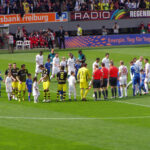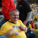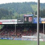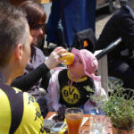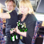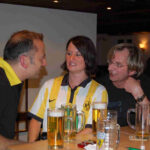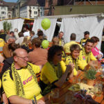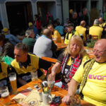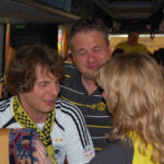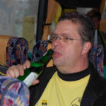 Frühstücksbuffet war von 7 – 11 Uhr und bis dahin haben es auch fast alle (siehe Markus und der Sekt) geschafft sich für das Spiel zu stärken. Wieder wurde Freiburg erobert, wobei die Farben der Stadt eindeutig schwarz-gelb wurden. Auschecken, Restproviant einladen, einsteigen und ab ging’s um 14 Uhr zum Freiburger Badenova-Stadion. Mit über 8000 schwarz-gelben Fans und großer Vorfreude erreichte uns plötzlich die erste Hiobsbotschaft des Tages „Hansi hat seine Eintrittskarte verloren“. Deprimiert hatte er sich schon in den Bus zurückgezogen, aber durch den unermüdlichen Einsatz unseres Präsi und des 2. Vorsitzenden des SC Freiburg konnte ihm eine Ersatzkarte besorgt werden. Diese Karte kostete Hansi nur eine Runde „alkoholfreie“ Getränke im Bus. Die einhellige Meinung aller „Forzesen“ war, dass diese Investition sich für Hansi nicht gelohnt hat, wir haben verloren (3:1), zweite Hiobsbotschaft.