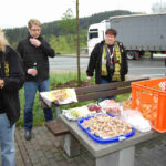 So rollten wir um 8 Uhr auf die Raststätte Katzenfurt, zwecks Pippi-, Rauch- und Frühstückspause. Wie immer mit frischen Brötchen, Fleischwurst, Mettwurst und Frikadellen, dazu hatte Elke ein zünftiges BvB-Brot gebacken und natürlich frisches gekühltes Brinkhoff´s No 1. Hier lag kein Schnee mehr, der Regen machte Pause und die Temperatur war noch immer einstellig.