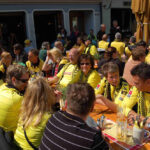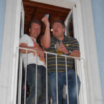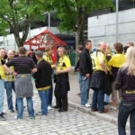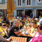 Um 19 Uhr trafen sich (fast) alle zur Fan-Club-Party im Brauereiausschank Ganter direkt am Freiburger Münster. Neben „lecker“ Bier und dem Buffet mit einheimischen Schmankerln servierte „DJ Markus“ die passende Musik. Die Stimmung war gut, die Luft warm und alle Fenster offen, was den Teilnehmern eines Kammerkonzertes im Münster nicht so recht passte, da ihre und unsere Musik nicht wirklich miteinander harmonisierte. Also Fenster zu und Musik wieder lauter, denn wer Schnee im Mai abkann kommt mit tropische Hitze erst recht klar.