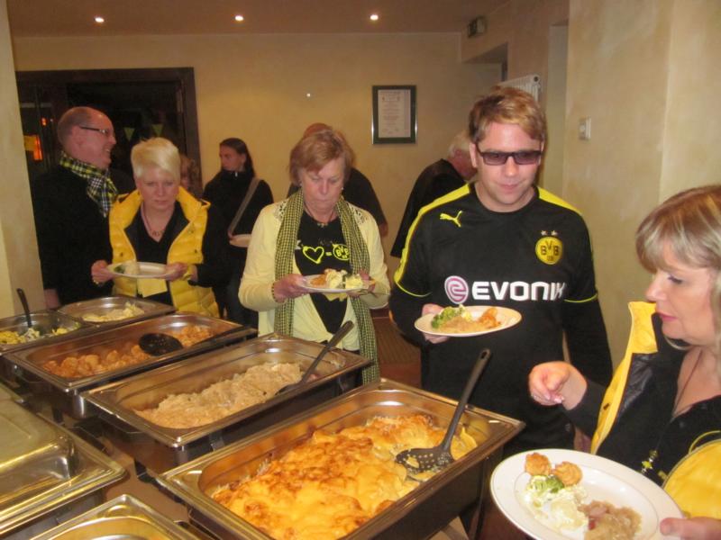 Der Fanclub Forza-Borussia 1996 lud zur ersten Schwarz-gelben Nacht in Dortmund ein. Der ausgerufene Dresscode wurde natürlich von allen Gästen befolgt und von außen betrachtet hat der ein oder andere Passant ungläubig auf den Kalender geschaut und gedacht, er hätte ein Heimspiel des BVB verpasst. Kulinarisch konnten die Organisatoren des festes wieder einmal mit einem leckeren Kalt-Warm-Buffet überzeugen. Lecker..!