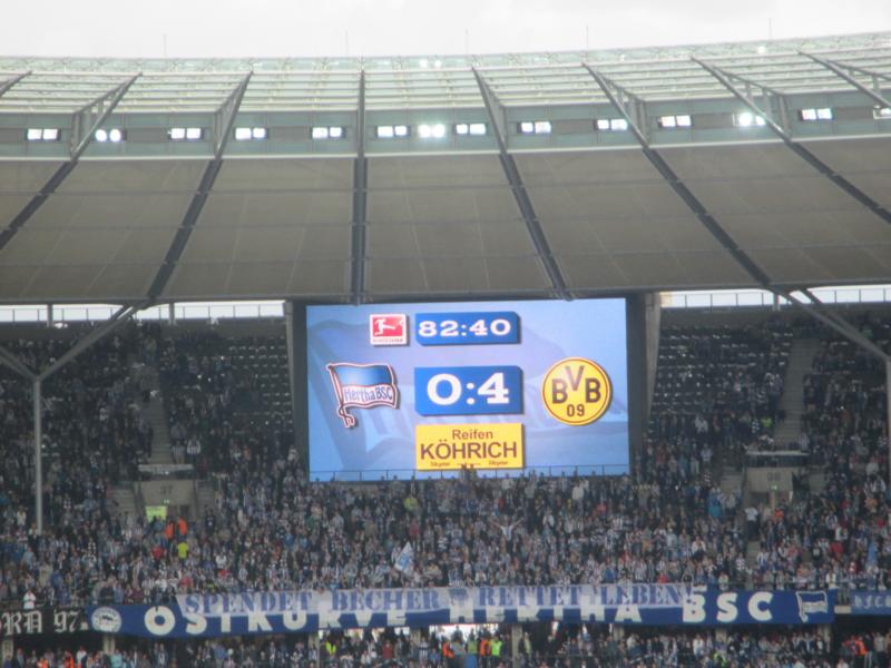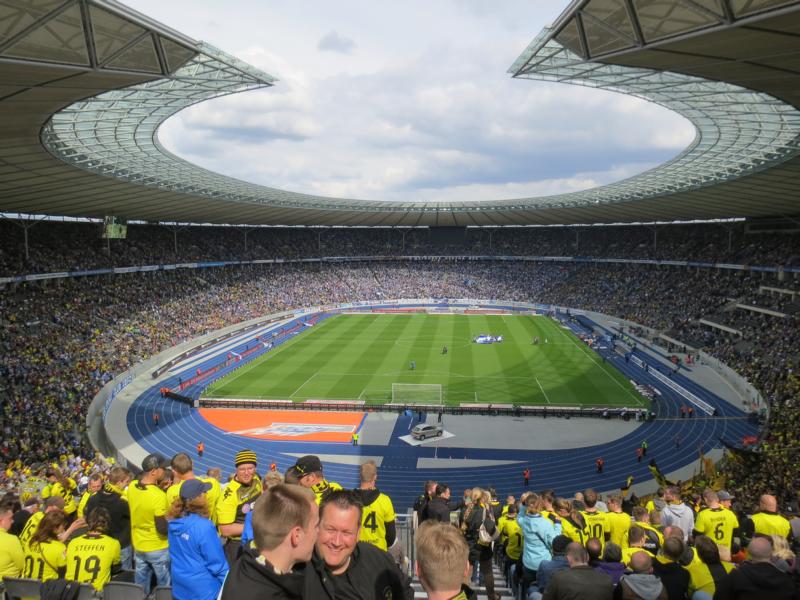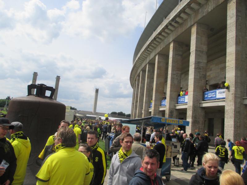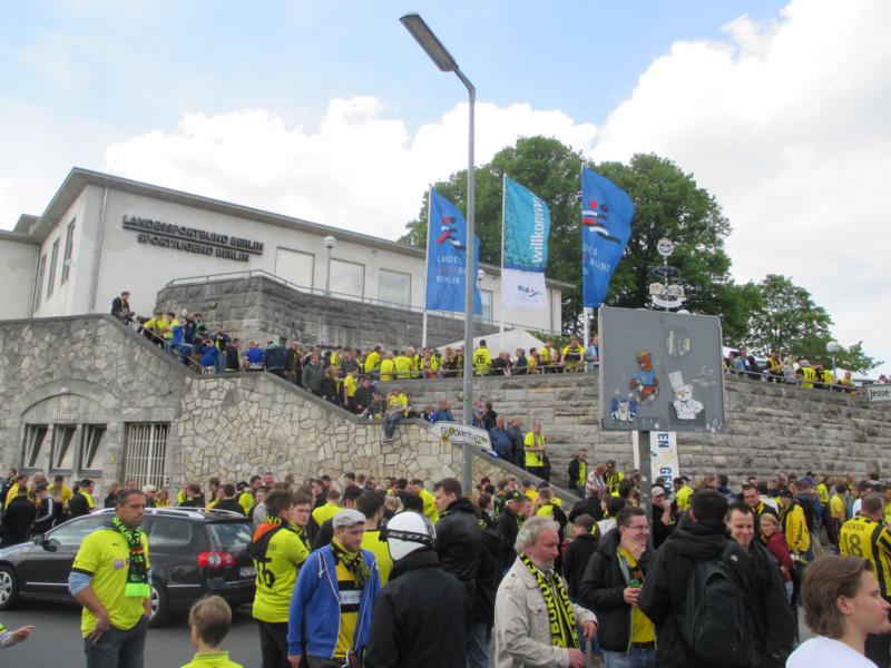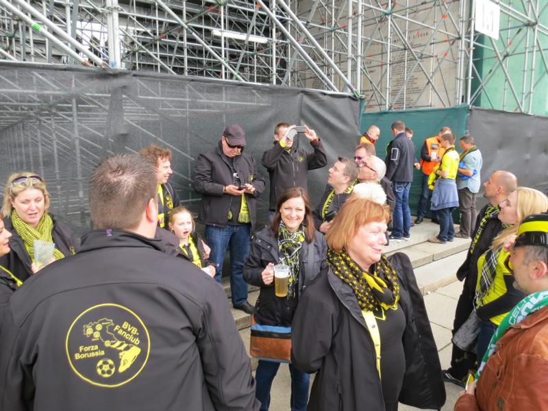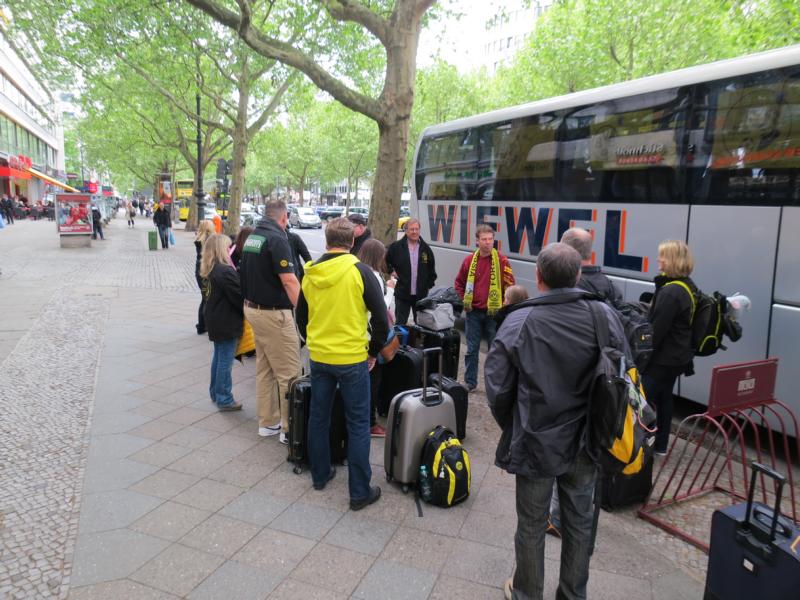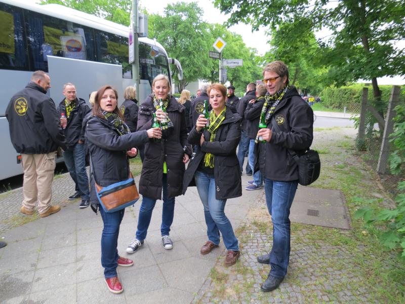 Nach dem etwas verkaterten Frühstück im Amedia Hotel ging es für viele Forzesen auf den Ku´damm zum Schaufensterbummel – Schuhe kaufen war angesagt! Andere Forzesen nutzen die Aussengastronomie um das berühmt berüchtigte Konterbier zu bestellen. Andere wiederum nutzten die Zeit bis zur Abfahrt zum alterwürdigen Olympiastadion und schliefen erst einmal richtig aus. Gegen 12.00 Uhr Mittags fuhr der Fanclubbus Richtung Spielstätte um unsere Borussia bei ihrem letzten Saisonspiel anzufeuern. Das Ligafinale hatte aufgrund der schon sichereen Platzierung auf Platz 2 zwar seine Spannung verloren, reizte aber alle Borussen den Saisonabschluss gemeinsam zu feiern.