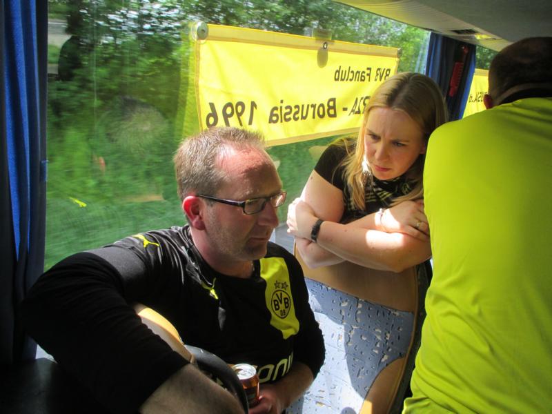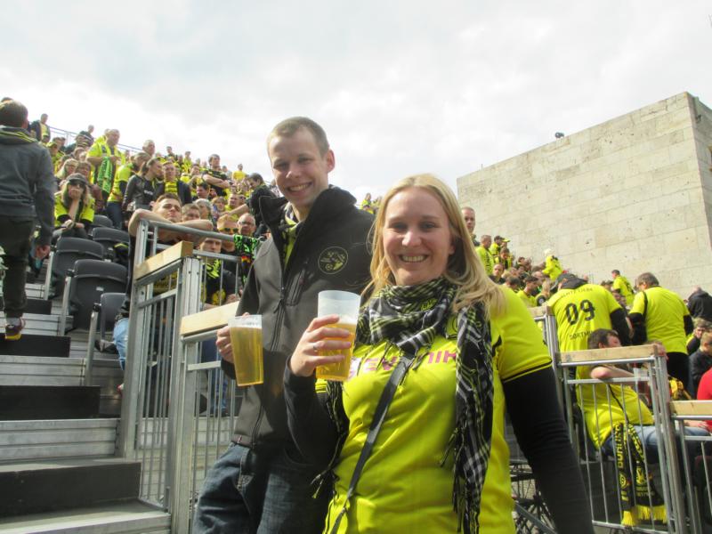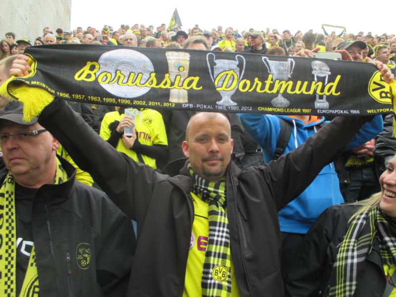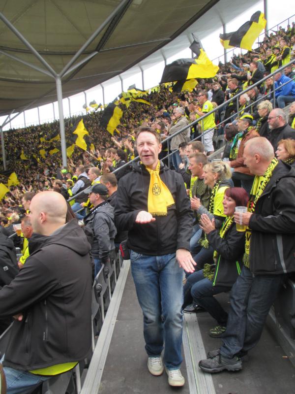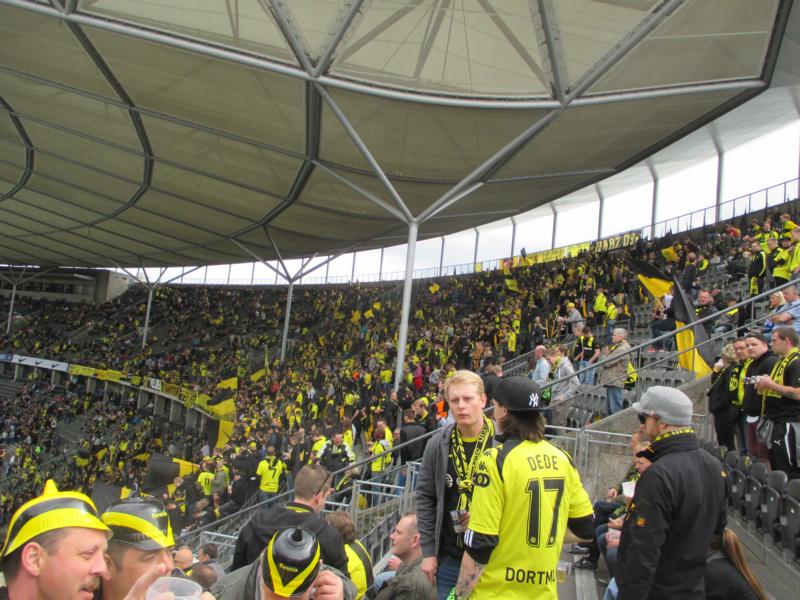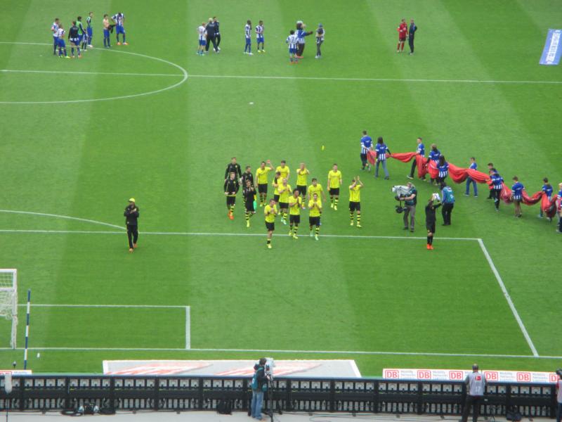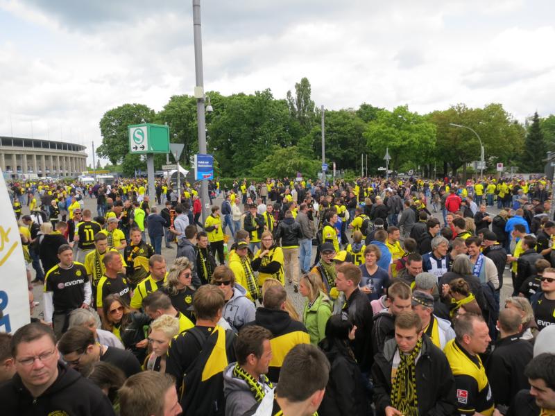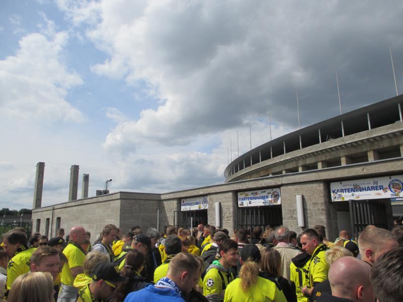 Nach dem etwas verkaterten Frühstück im Amedia Hotel ging es für viele Forzesen auf den Ku´damm zum Schaufensterbummel – Schuhe kaufen war angesagt! Andere Forzesen nutzen die Aussengastronomie um das berühmt berüchtigte Konterbier zu bestellen. Andere wiederum nutzten die Zeit bis zur Abfahrt zum alterwürdigen Olympiastadion und schliefen erst einmal richtig aus. Gegen 12.00 Uhr Mittags fuhr der Fanclubbus Richtung Spielstätte um unsere Borussia bei ihrem letzten Saisonspiel anzufeuern. Das Ligafinale hatte aufgrund der schon sichereen Platzierung auf Platz 2 zwar seine Spannung verloren, reizte aber alle Borussen den Saisonabschluss gemeinsam zu feiern.