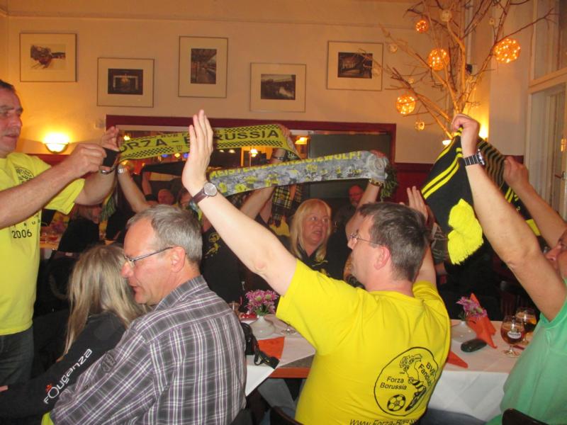Nach dem erfolgreichen Spiel gegen die Hertha aus Berlin nutzten die Forzesen am Samstag Abend unverdrossen die Berliner Gastronomie und feierten den schwarz-gelben Sieg. Anlaufstelle war wieder einmal der „Altberliner biersalon“ mit seinem Dortmunder Bierspäzialitäten. Vereinzelte Forzesen – so wurde auf der Rückfahrt nich Bönen berichtet – mussten in der Nacht vor aufdringlichen Einheimischen flüchten! Gott sei Dank kam kein Forzese unter die berühmten Räder. Ein Highlight dieser Tour muss noch erwähnt werden: Noch in Berlin, während der Rückfahrt, sollte das Brandenburger Tor als Kulisse für ein Forza-Borussia Gruppenfoto dienen. Der monsunartige Regenschauer vereitelte allerdings dieses Fotoshooting und erstmals in der noch jungen Fanclubgeschichte existiert leider kein Bild der gesamten Gruppe. Gegen 20.00 Uhr Sonntag Abend endete nach sicherer Heimreise die erste zweitägige Fanclubtour nach Berlin. Danke an alle mitreisenden Forzesen.