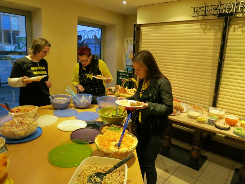 Während des Abends konnten sich die Mitglieder des Fanclubs am transportablen Fanclub-Fanshop mit den verschiedenen Forza-Borussia Devotionalien eindecken. Einige Mitglieder nutzten dieses Angebot und erstanden die schwarz-gelben Fanclubartikel.
